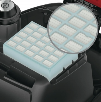 Omyvatelný HEPA hygienický filtr: vhodný pro alergiky - žádné další náklady. Díky tomu dosahuje vysavač při emisích prachu třídy A.