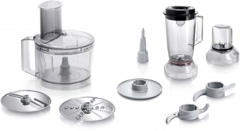 | Dodávané příslušenství | 1 x víko, 1 x míchací mísa 500g z umělé hmoty, 1 x umělohmotný mixer, 1 x strouhací kotouč, 1 x drticí kotouč, 1 x krájecí kotouč, 1 x pěchovátko, 1 x univerzální nůž, 1 x univerzální drtič, 1 x držák příslušenství |