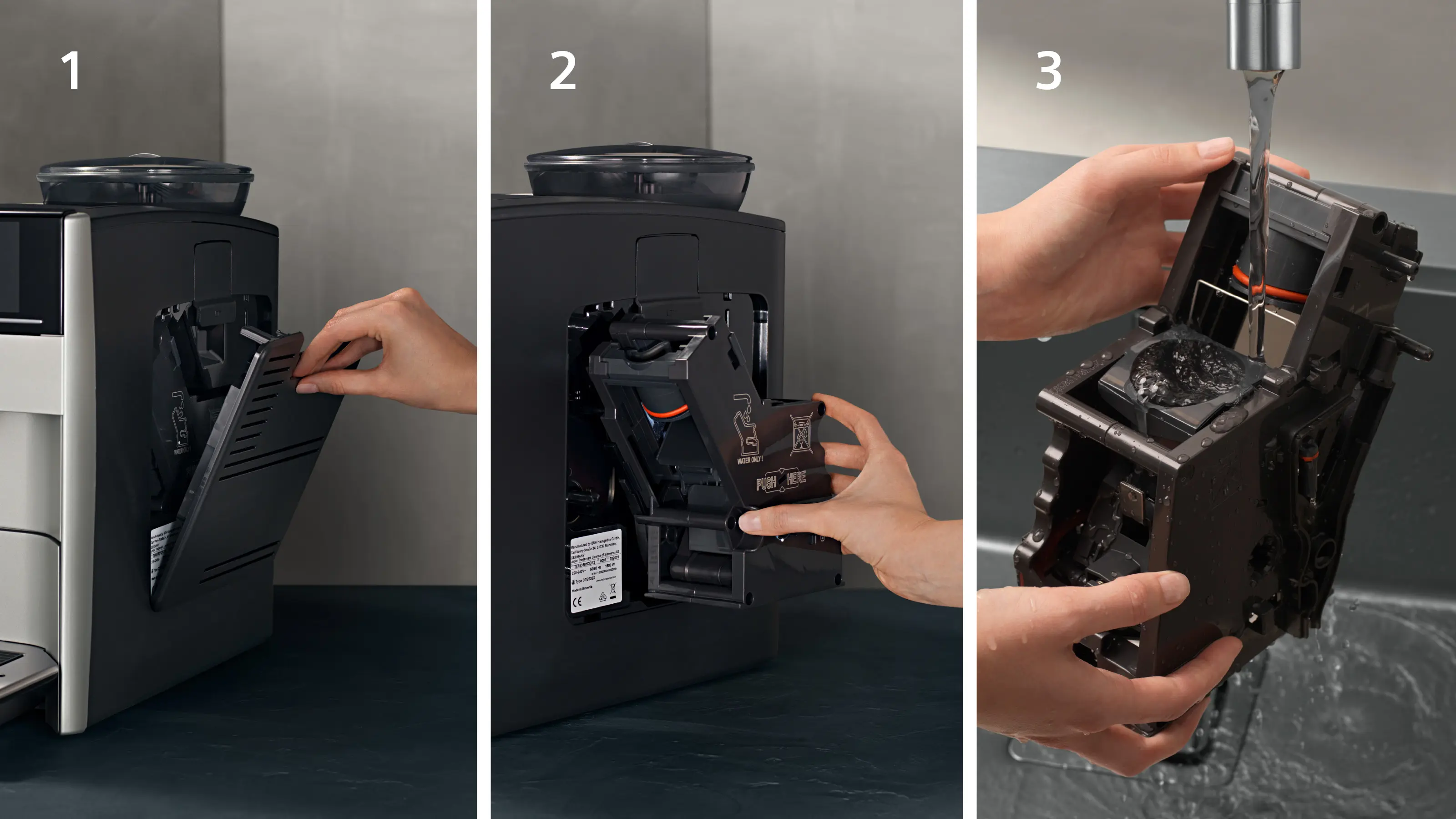 Hygiena a pohodlí je zaručena - vyjímatelná spařovací jednotka.Pro hygienické čištění se dá spařovací jednotka snadno vyjmout, opláchnout pod tekoucí vodou a poté vrátit. To zajišťuje stále dobrou chuť kávy a prodlužuje životnost. Takže se můžete vrátit k vychutnání čisté vůně těch nejlepších kávových specialit. | ![]() |