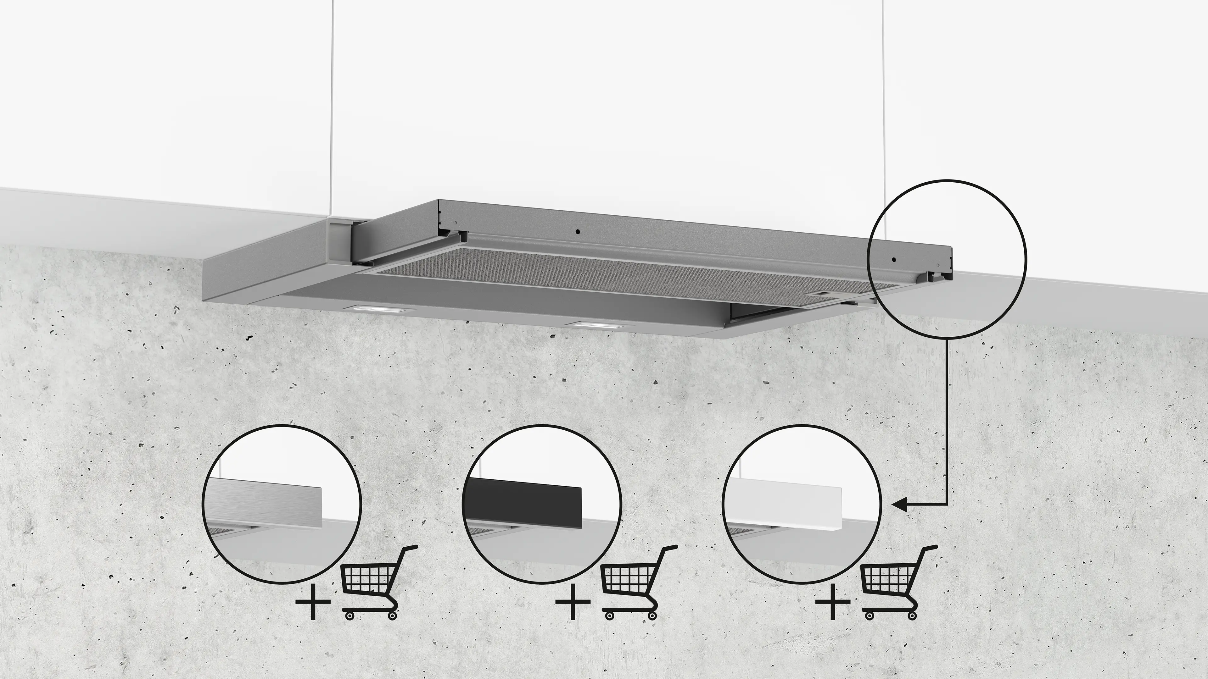 odsavač bez madla, nutná instalace dekorační lišty