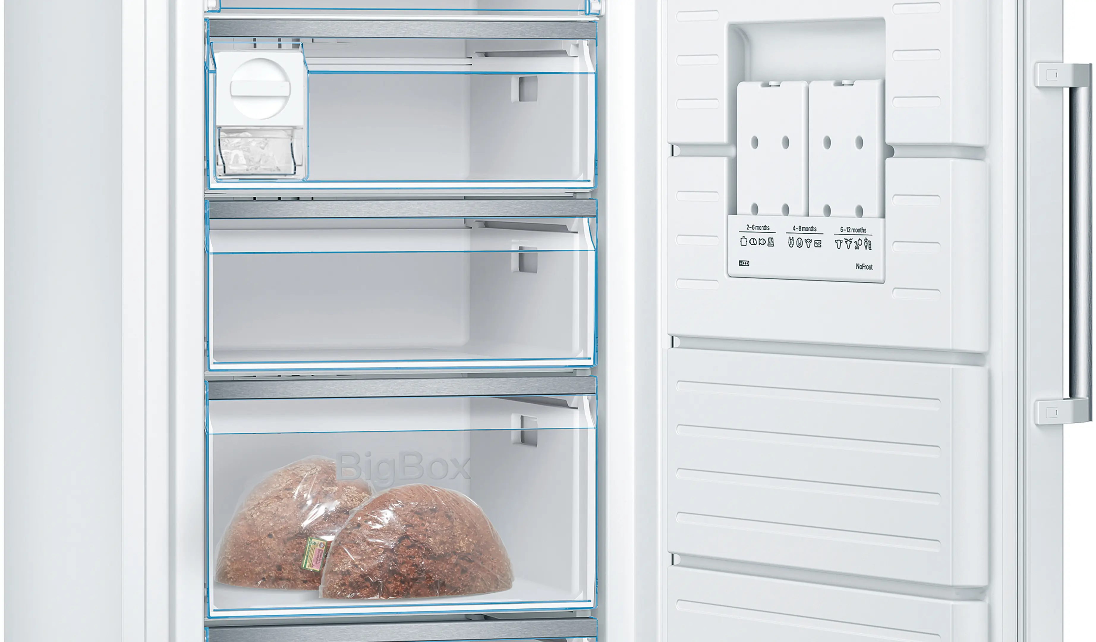 ![]() | Spousta prostoru pro mražené zboží velikosti XXL zásluhou zásuvky BigBox na mražené potravinyZásuvka na hluboce zmražené potraviny pro praktické uspořádání již zmražených potravin nebo potravin o velkém objemu, např. dortů nebo pizz. Nezáleží na tom, zda musíte zajistit narozeniny pro své děti nebo zmrazit svatební dort. V zásuvce BigBox najdete dostatek místa pro velké mražené potraviny. |