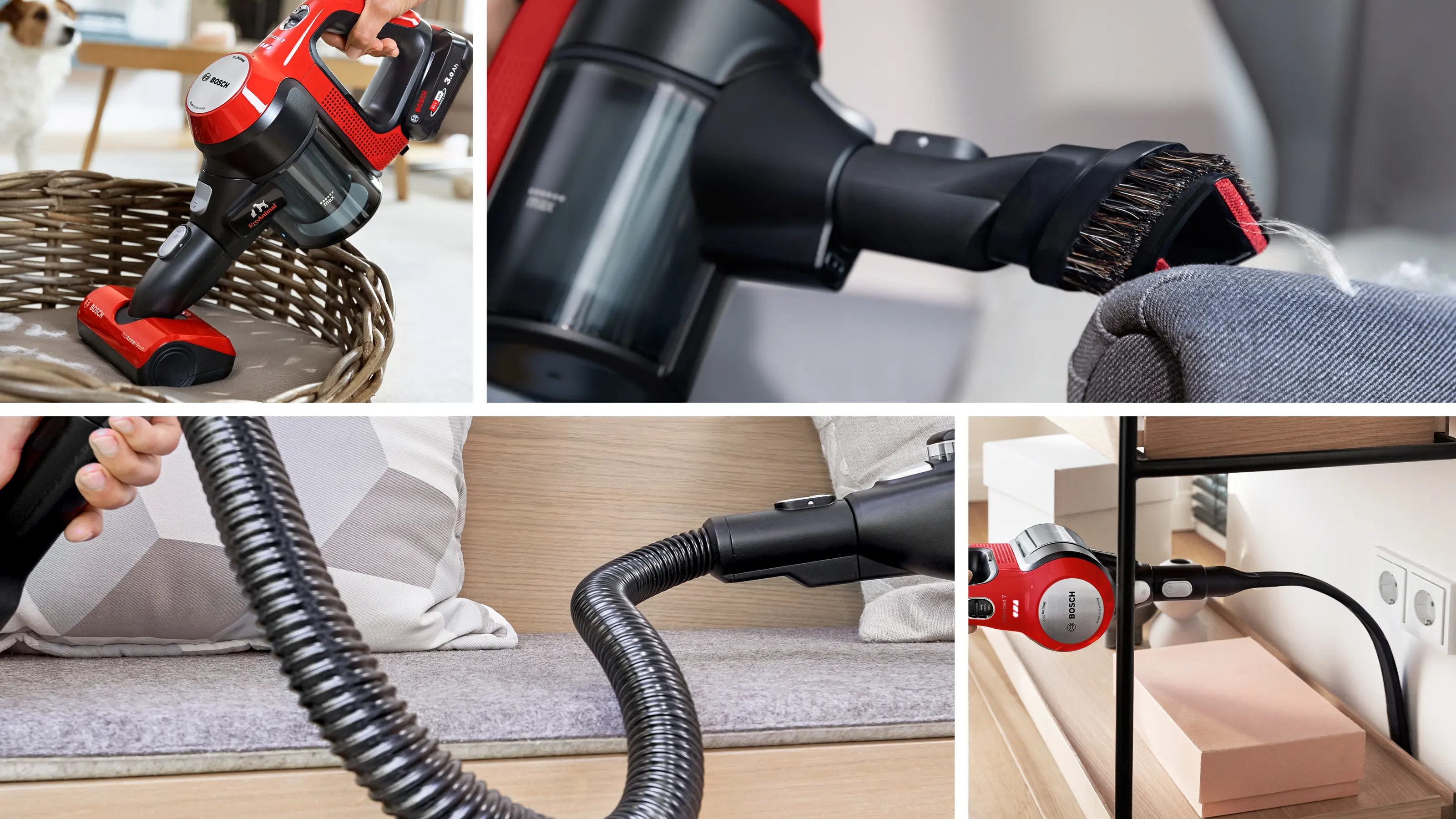Přídavný kartáčový váleček pro mini hubici. Nabíjecí kabel Prodlužovací hadice: pohodlné vysávání díky elektrickému propojení mezi hadicí a dalším příslušenstvím. Dlouhá flexibilní hubice na spáry: usnadňuje vysávání těžko přístupných míst a úzkých prostor, zejména za nábytkem, v zásuvkách nebo ve vašem autě. ProAnimal mini hubice: extra motorizovaná hubice pro vysávání zvířecích chlupů a vláken na čalounění.