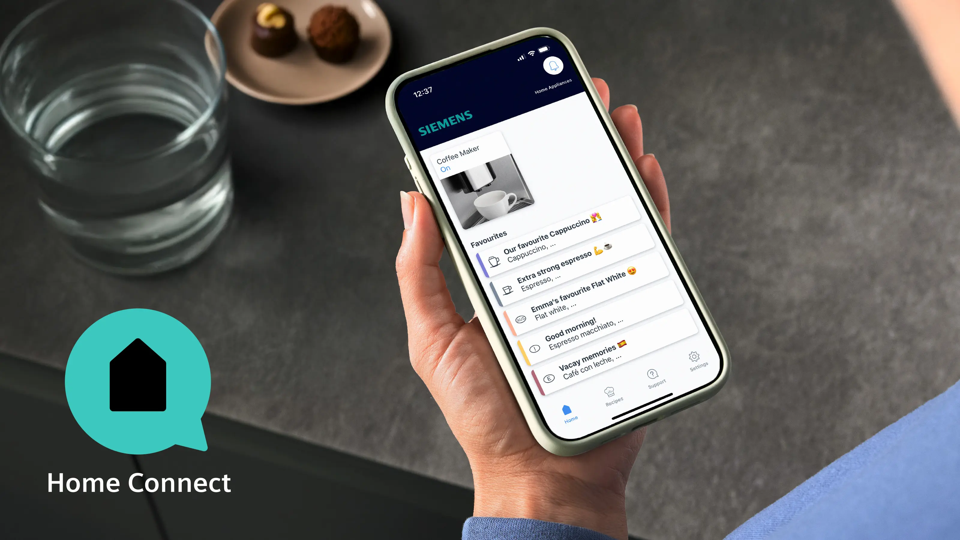 ![]() | Home Connect Dokonalé připojení k vašemu kávovaru - Home Connect.Ovládejte svůj plně automatický stroj na espresso pomocí jakéhokoli inteligentního zařízení. A objevte exkluzivní svět aplikace Home Connect. Například coffeeWorld, nabízí řadu mezinárodních kávových specialit. Nebo zkuste coffeePlaylist a vytvořte si seznam svých oblíbených nápojů připravených jeden po druhém na vaší kávové párty. |