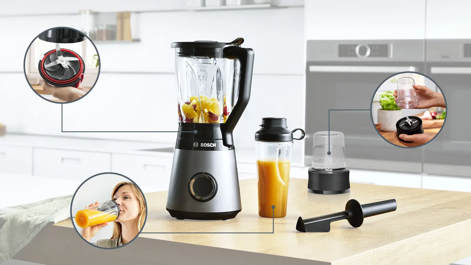 Výkonný mixér s ThermoSafe skleněnou mixovací nádobou. Se systémem ProPerformance připravíte snadno a bezpečně dokonalé smoothie v mixéru i přímo v 2Go láhvi. O správnou směs koření se postará sekáček a mlýnek v jednom.