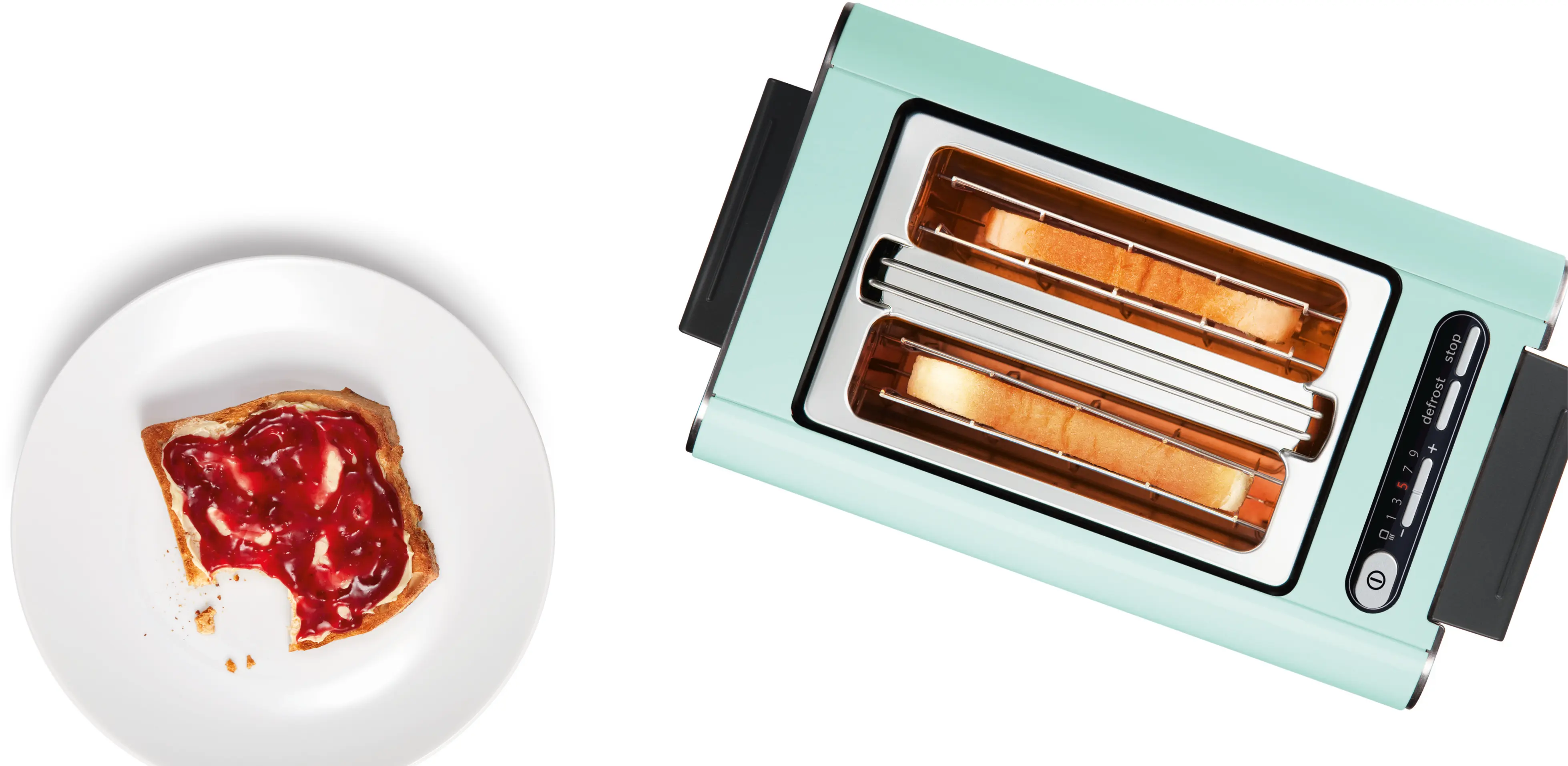 Elektronické nastavení opékacích stupňů, včetně dopečení, křupavého toastu a paměťové funkce