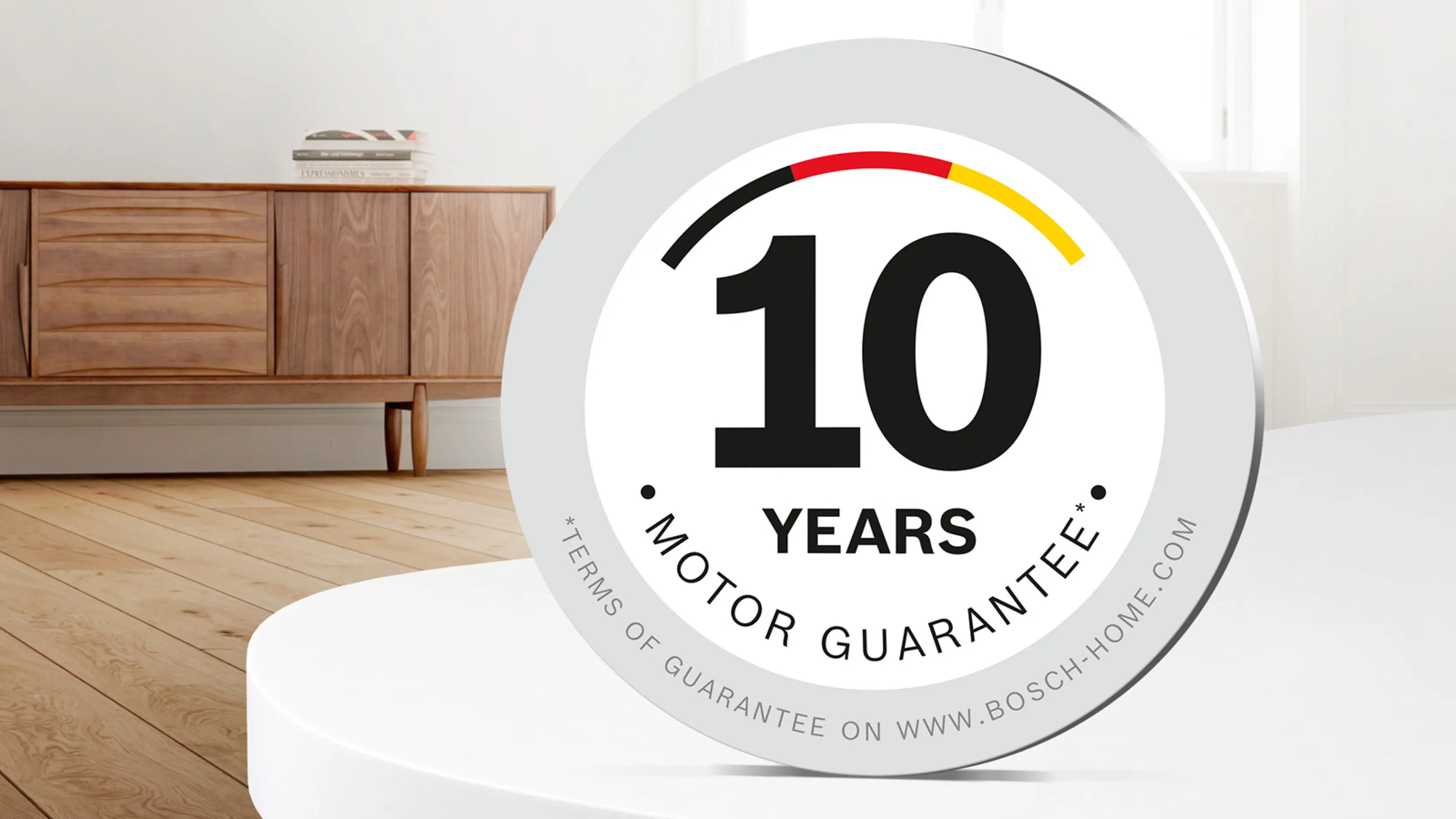 10 let záruky motor *: konstantní vysoký výkon s motory Bosch vyrobenými v Německu.