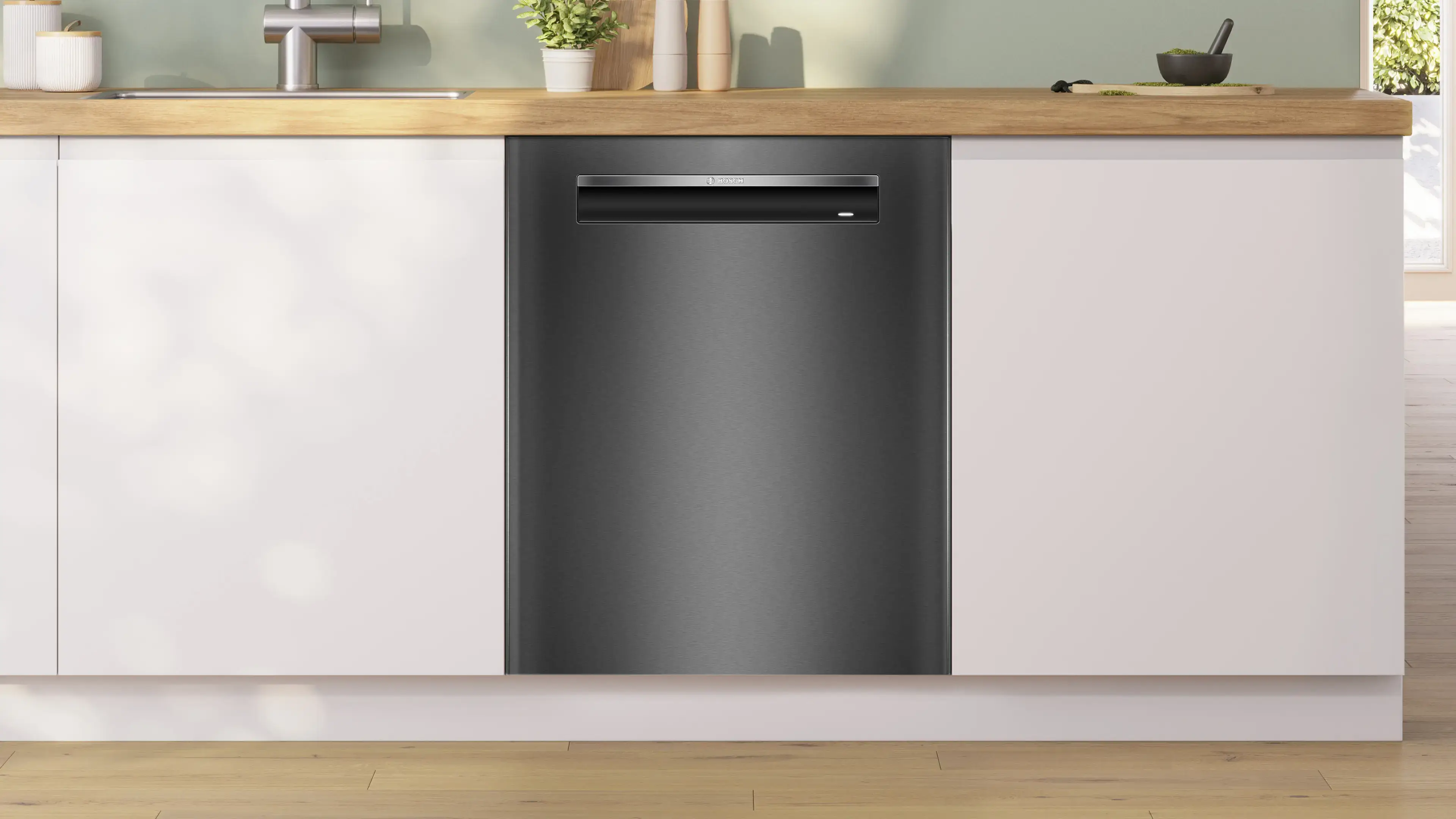 Serie 4, Podstavná myčka nádobí, 60 cm, Kartáčovaná černá ocel zabraňuje otiskům prstů