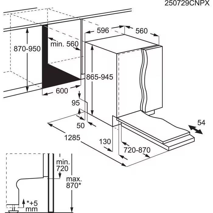 | Rozměry pro vestavbu | 870-950x600x560 mm |