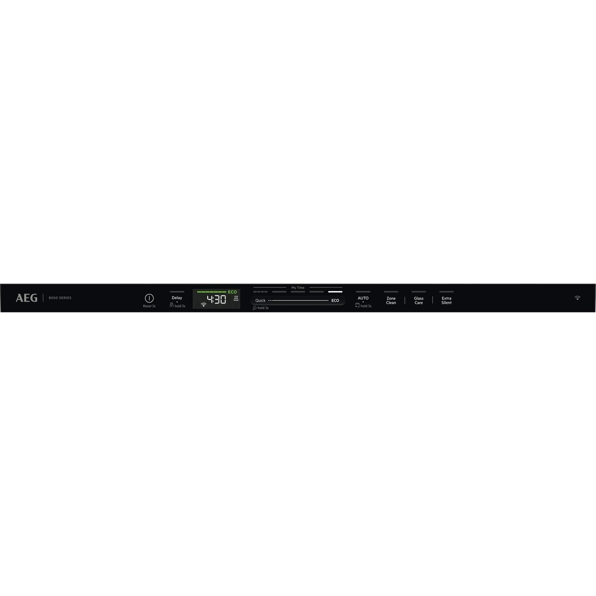 Indikace funkcí: budík, zpožděný start 1-24h, extra tichý, GlassCare, LightOnFloor, indikátor pro leštidlo, sůl, ZoneClean